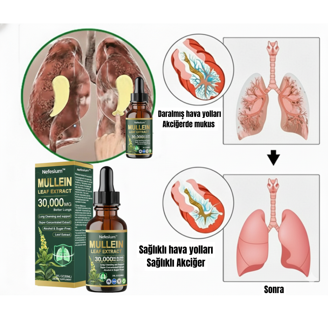 Yüksek konsantrasyonlu Mullein yaprak bitkisel özü ile formüle edilen bu özel damla, solunum yollarını desteklemeye yardımcı olur. Alkol ve şeker içermeyen bitkisel yapısı sayesinde günlük kullanım için uygundur. Şehir havası, sigara dumanı ve çevresel etkilere karşı akciğer konforunu desteklemek isteyenler için doğadan gelen etkili bir alternatif sunar.